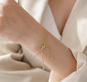 Gracefully simple yet endlessly refined, Chrysa Dione is a golden thread of elegance that flows with the spirit of divine femininity. Named after Chrysa, meaning “golden,” and Dione, a Titaness associated with love and prophecy, this adjustable bracelet blends fluid design with mythic inspiration. The central ring holds the strands in perfect balance, symbolizing unity and strength. Ideal for those who appreciate beauty in its purest form.