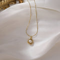 Emanating grace and mythic allure, the Aphrodite Phos necklace is a tribute to the goddess of love and beauty. A luminous freshwater pearl nestles in a sculpted gold pendant, echoing the divine birth of Aphrodite from the sea. The delicately textured chain adds a touch of ethereal elegance, making this piece perfect for those who wish to carry a hint of celestial light and timeless romance wherever they go.
