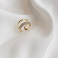 Introducing the Terpsichore Prometheus Ring, a stunning gold band that dances with innovative elegance. Its open crossover design features a gemstone-encrusted center, radiating brilliance with every angle. The adjustable fit ensures comfort, making it a perfect blend of modern style and timeless charm. Ideal as a striking gift or a personal statement, this ring embodies creativity and grace. Let its divine design elevate your collection with fiery sophistication.
