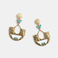 Introducing the Nereus Thalassa Earrings, a striking pair of gold dangle earrings that capture the essence of the sea’s beauty. Each features a textured U-shaped pendant with turquoise gemstones and a butterfly accent, topped with a rustic gold disc. The lightweight design ensures comfort, perfect for making a bold statement at any event. Ideal as a unique gift or personal treasure, these earrings radiate artistic elegance. Let their vibrant allure enhance your style with divine inspiration.