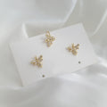 Delicate as a whisper yet radiant with divine sparkle, the Melithea Aeris set is a tribute to the sacred bee of Greek myth – symbol of harmony, abundance, and eternal beauty. Crafted in shimmering gold and encrusted with glistening stones, these petite bees seem to float like celestial messengers. Whether worn as a subtle statement or layered for a playful charm, this set adds a touch of mythic wonder to your everyday elegance.