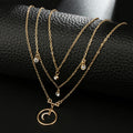 Introducing the Artemis Selene Multi-Layered Moon Necklace, a celestial masterpiece that captures the mystique of the night sky. This elegant gold-toned necklace features three delicate chains of varying lengths, each adorned with sparkling crystal accents and a central crescent moon pendant framed in a circular design. The adjustable toggle clasp adds a modern touch, making it both stylish and versatile. Perfect for those who adore lunar-inspired elegance, the Artemis Selene necklace is a divine addition to any jewelry collection, inspired by the Greek goddesses of the hunt and the moon.